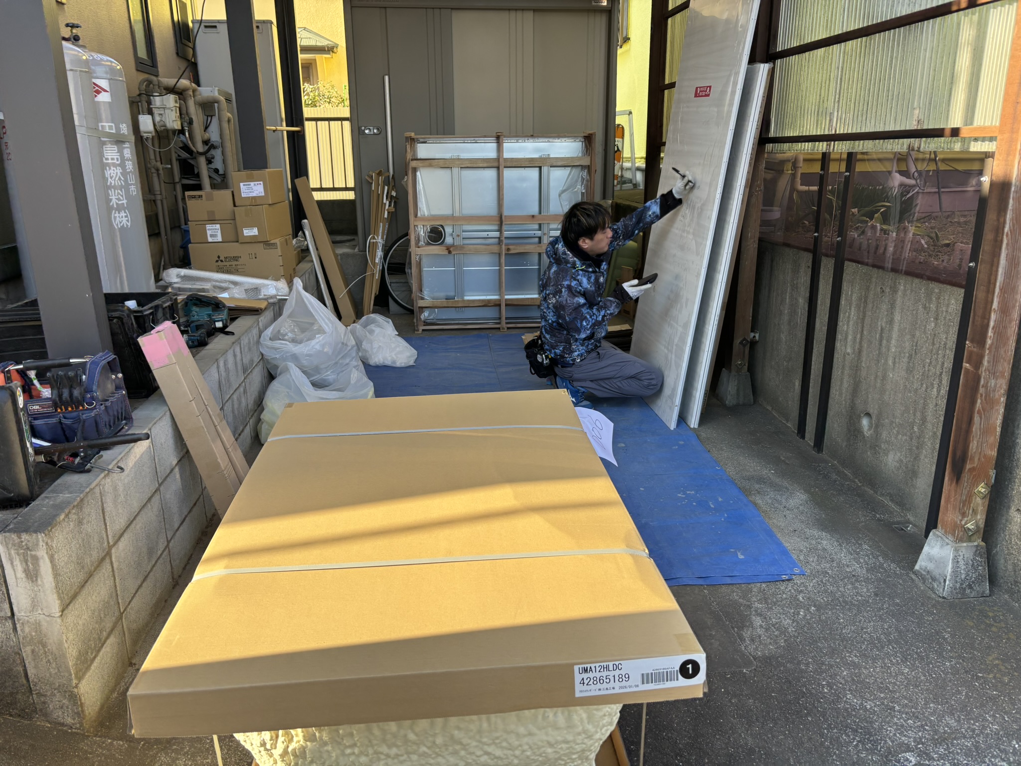 メーカーからユニットバスの搬入。