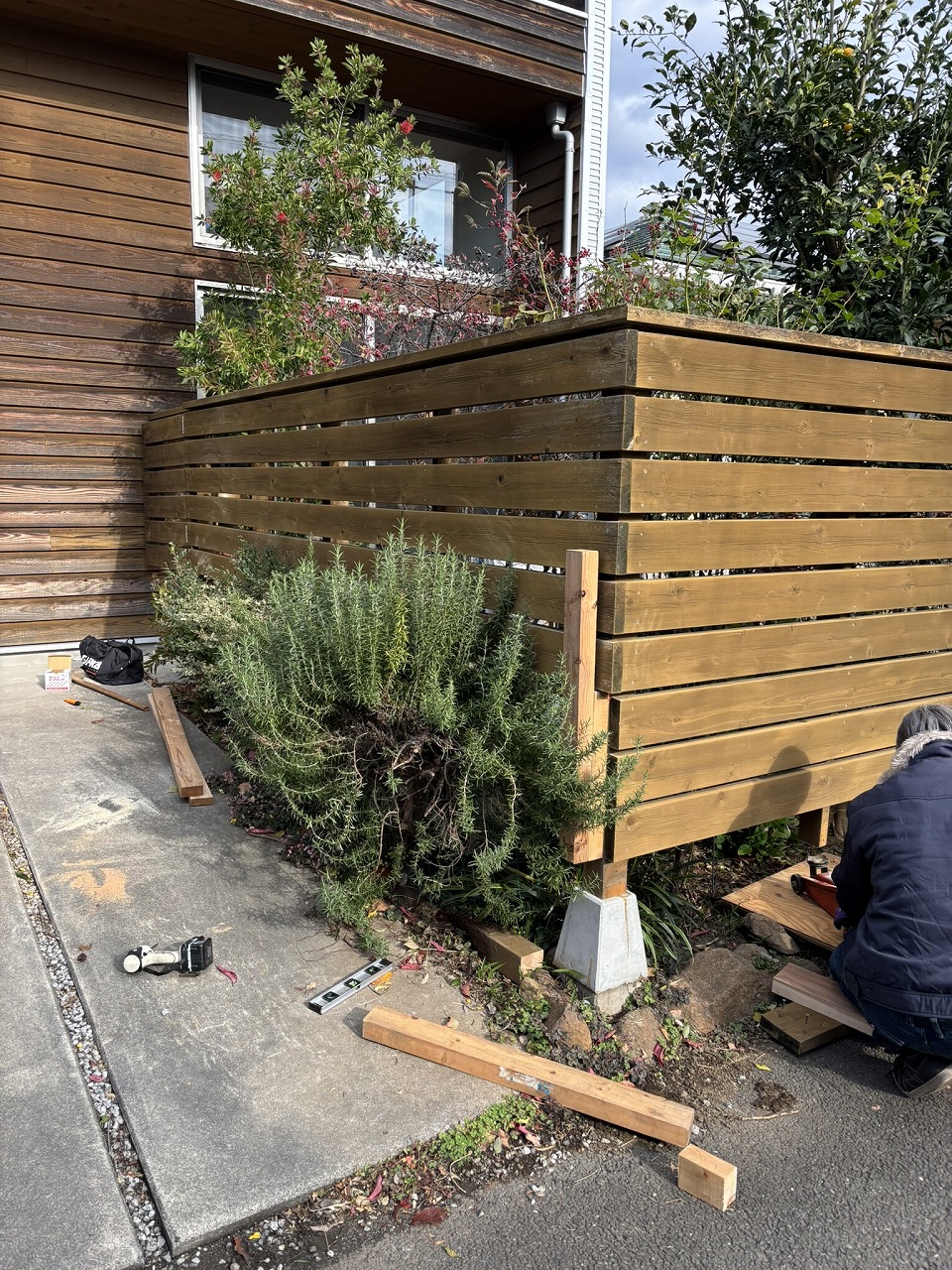 さいたま市のO様からウッドフェンスが下がってしまったとの連絡を頂き
