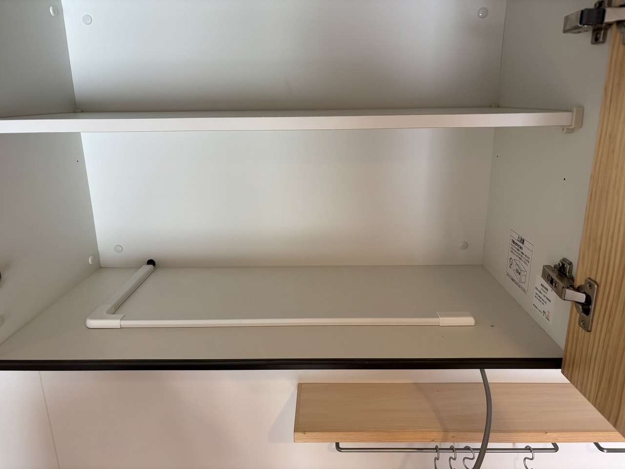 吊戸棚の背板に穴をあけて配線してもらいました。