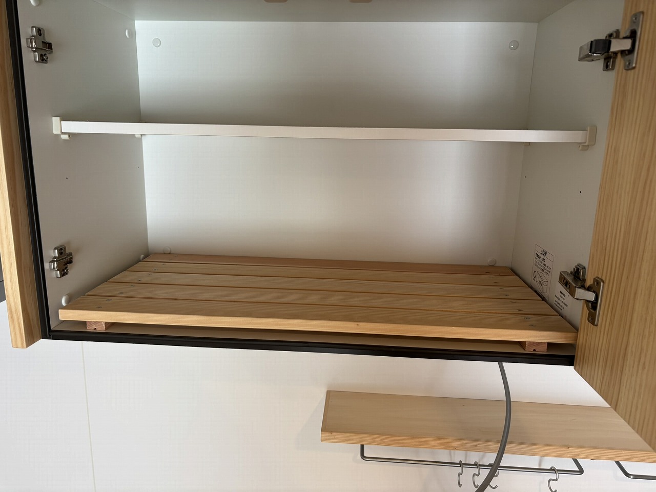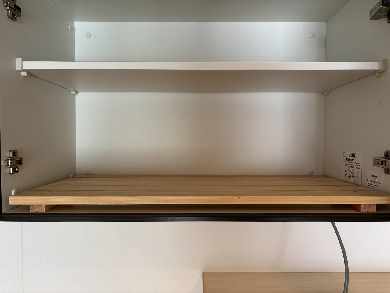 配線を吊戸棚内にする為、段差解消にスノコを敷こうと思います。