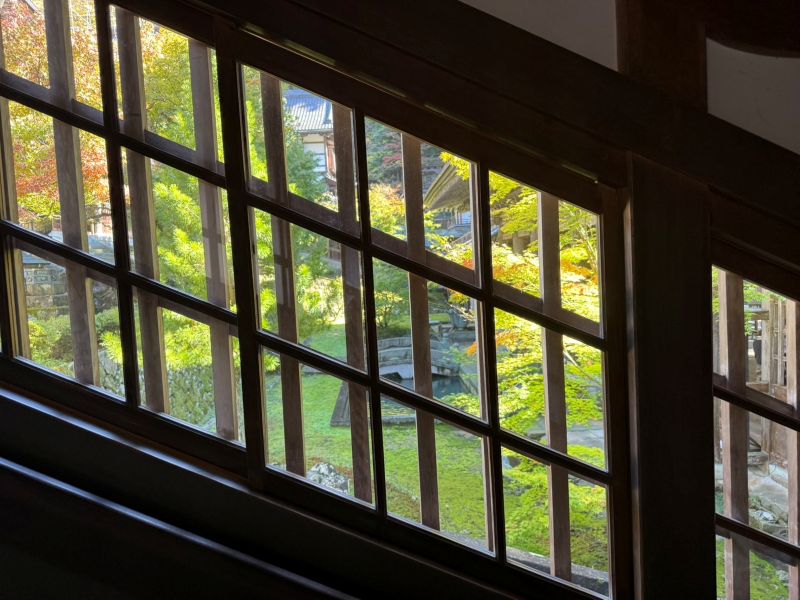 昇る途中で 斜めの建具と その先に観えた綺麗な紅葉