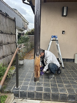 大変お待たせしておりました玄関ポーチの独立柱交換に行ってきました。