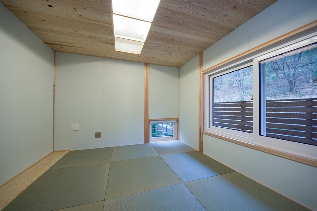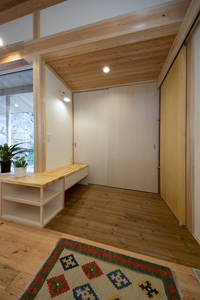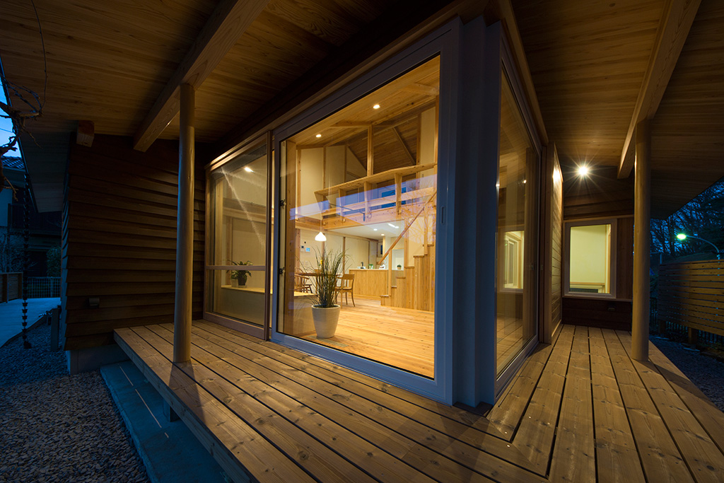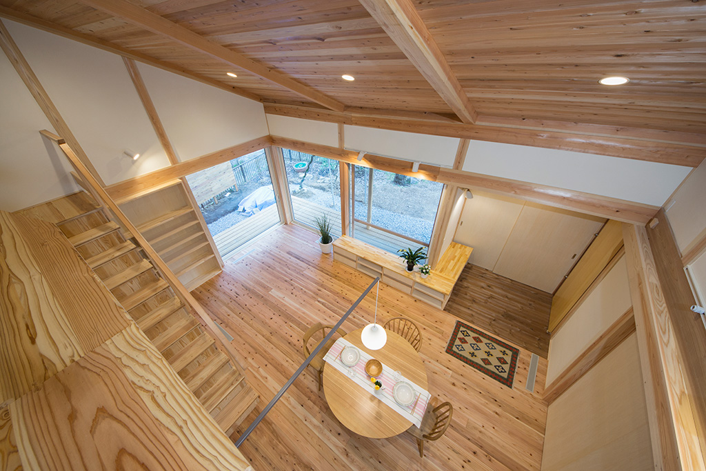 一階リビングの大きい窓から心地よい風が抜け、大きい縁側では安らぎを感じます。構造やフローリングにはもちろん国産無垢材(西川材)。設計から施工まで、トータルプロデュースしたYUTAKA STYLEの家です!