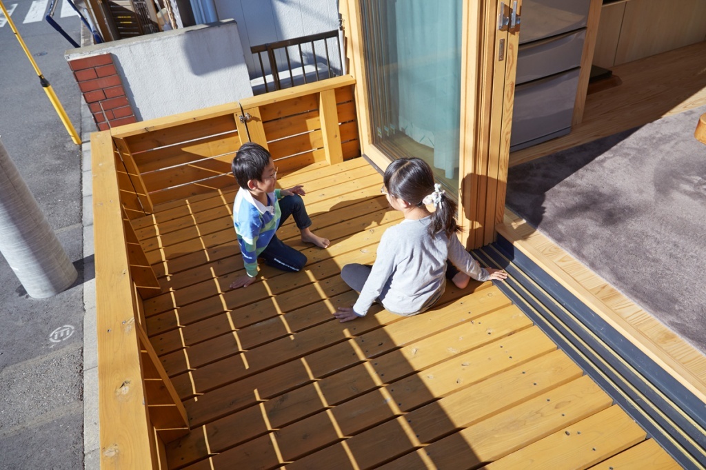 三世代二世帯住宅。家族のにぎやかさがにじみ出る重箱のような住宅