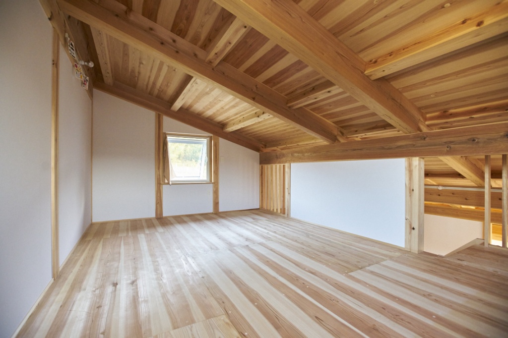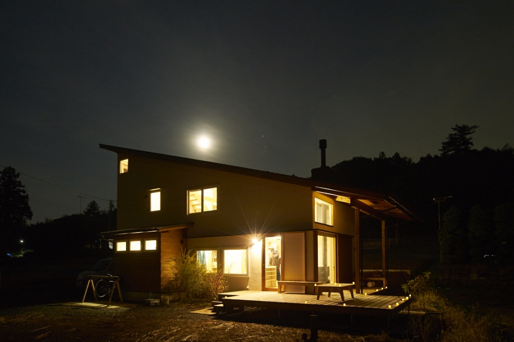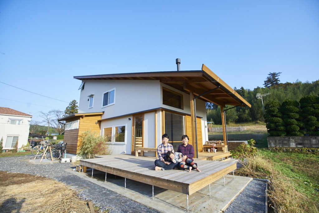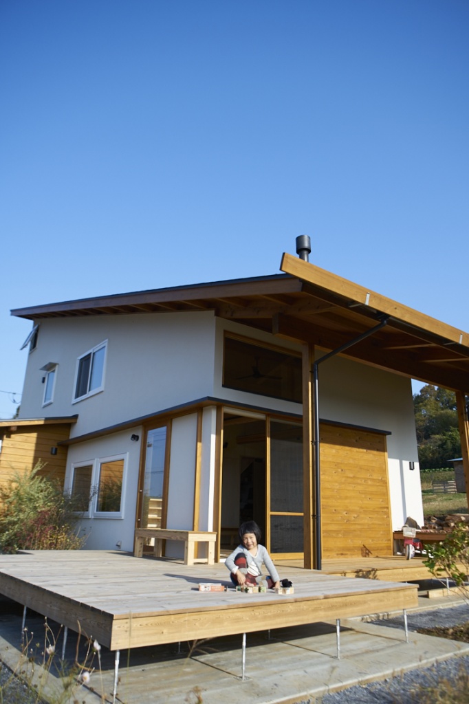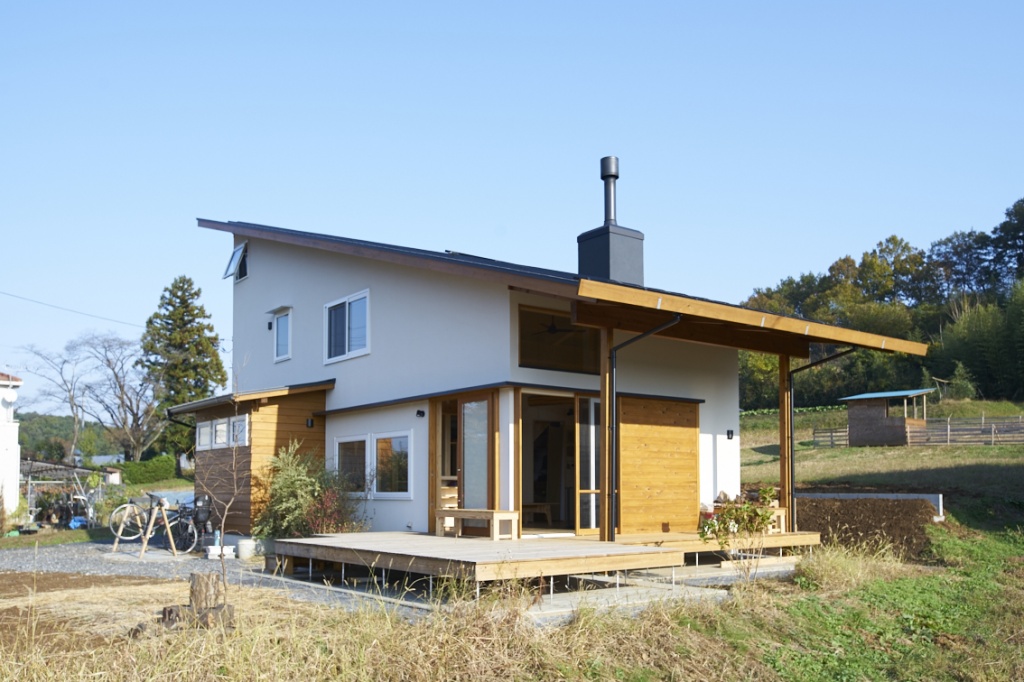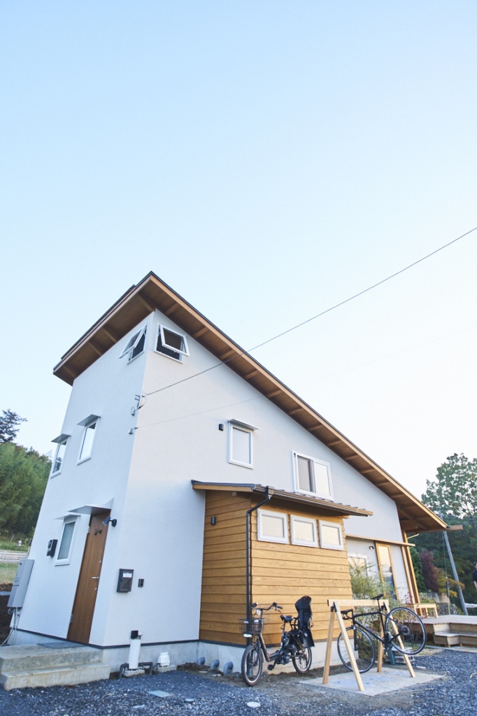 一方、外壁は漆喰、屋根は片流れでスタイリッシュなデザインが魅力。