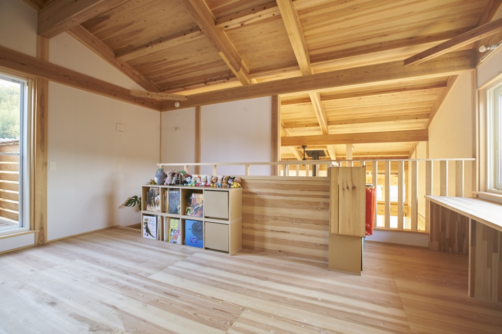 リビングの天井は吹き抜けで、心地よい開放感が訪れる人を癒す。