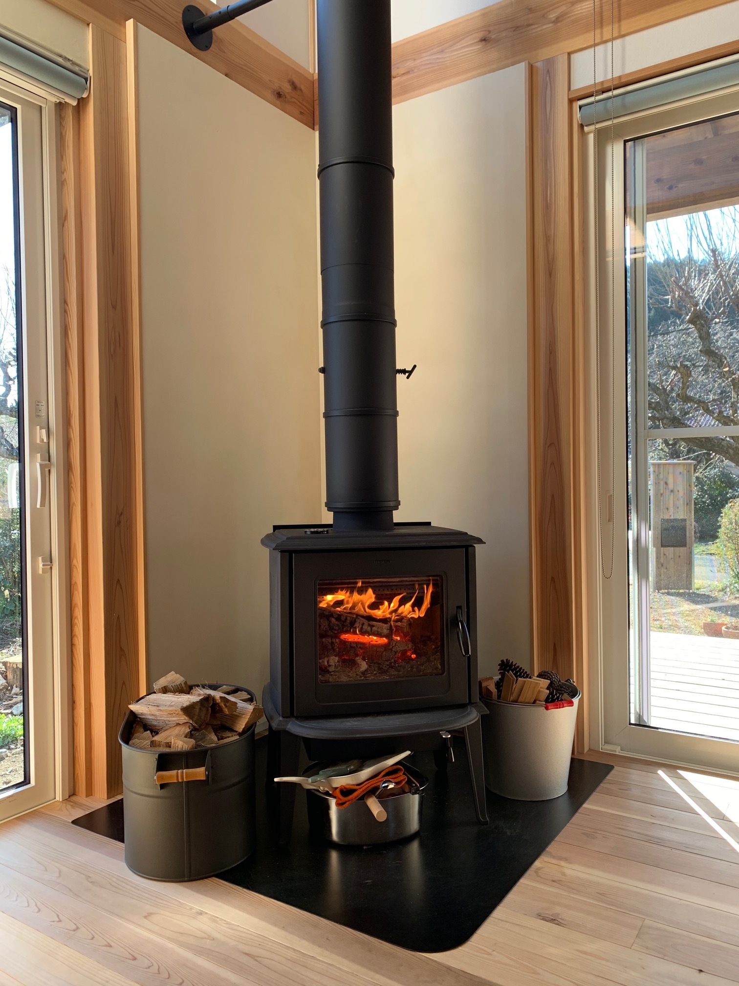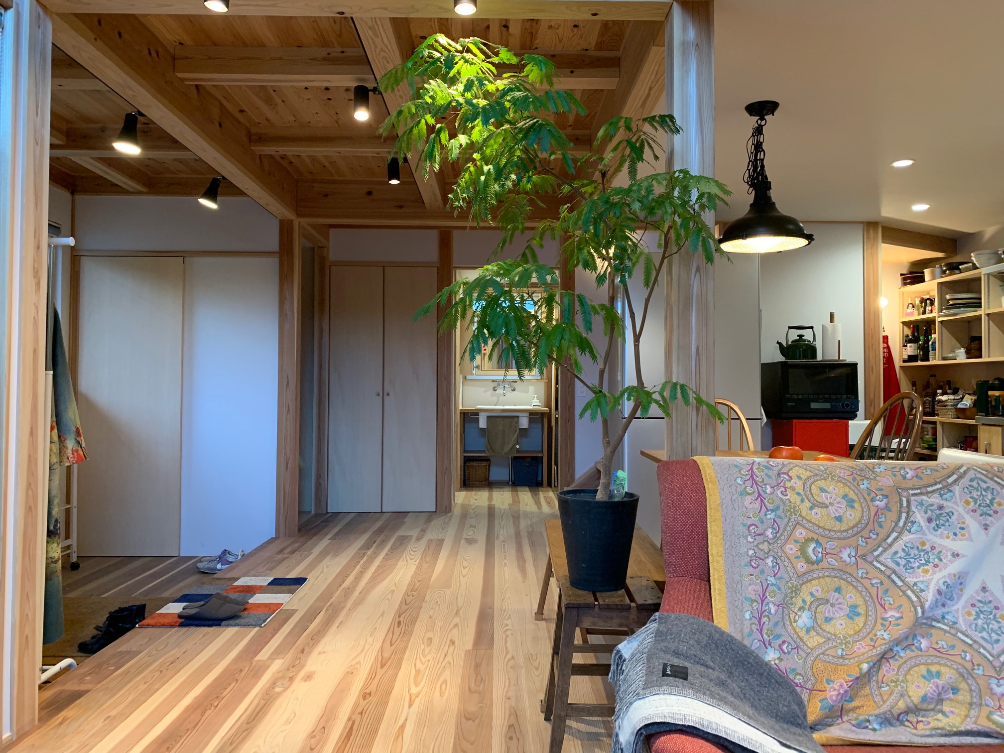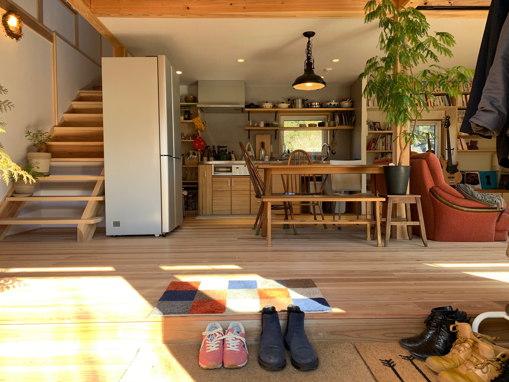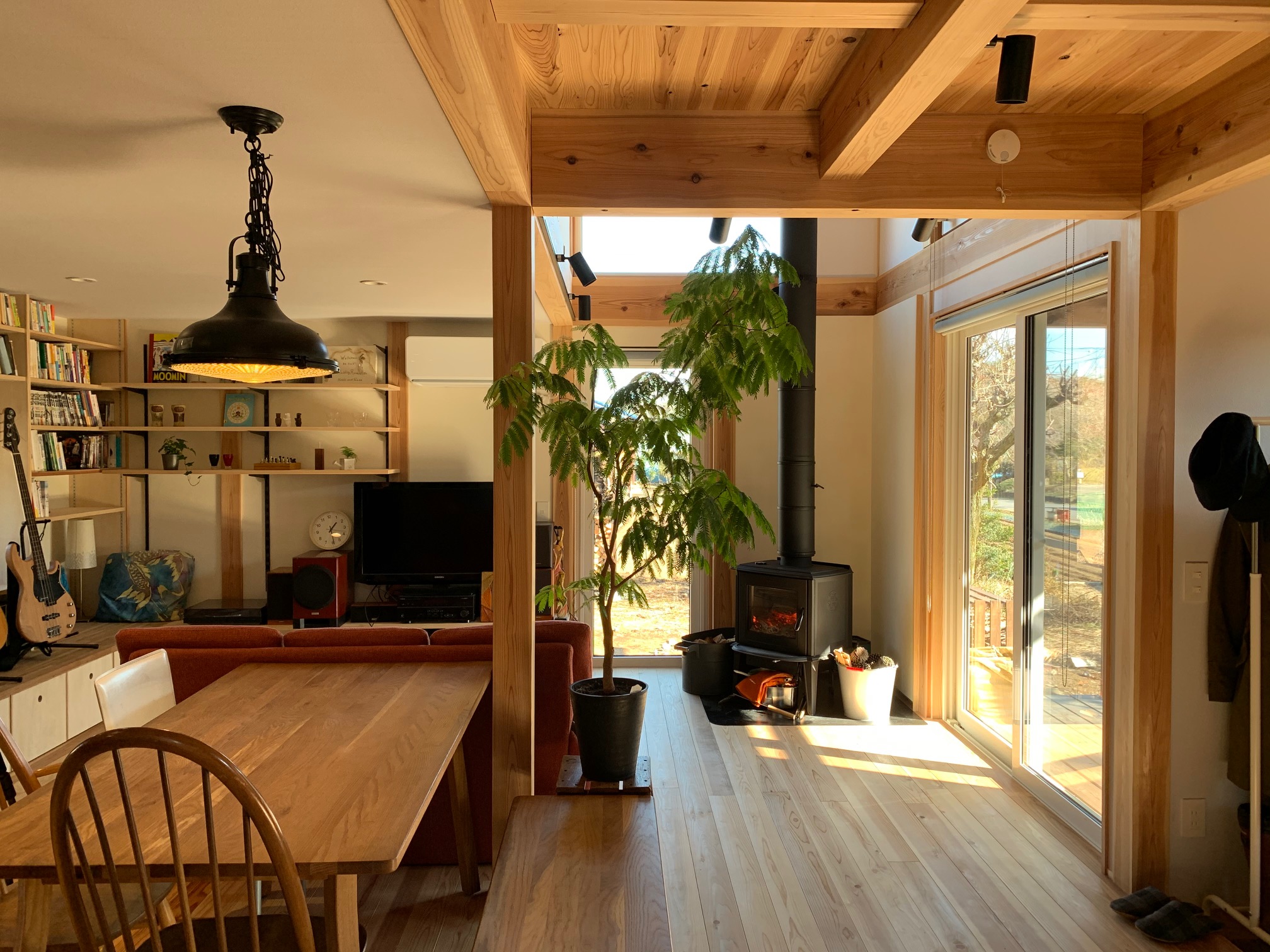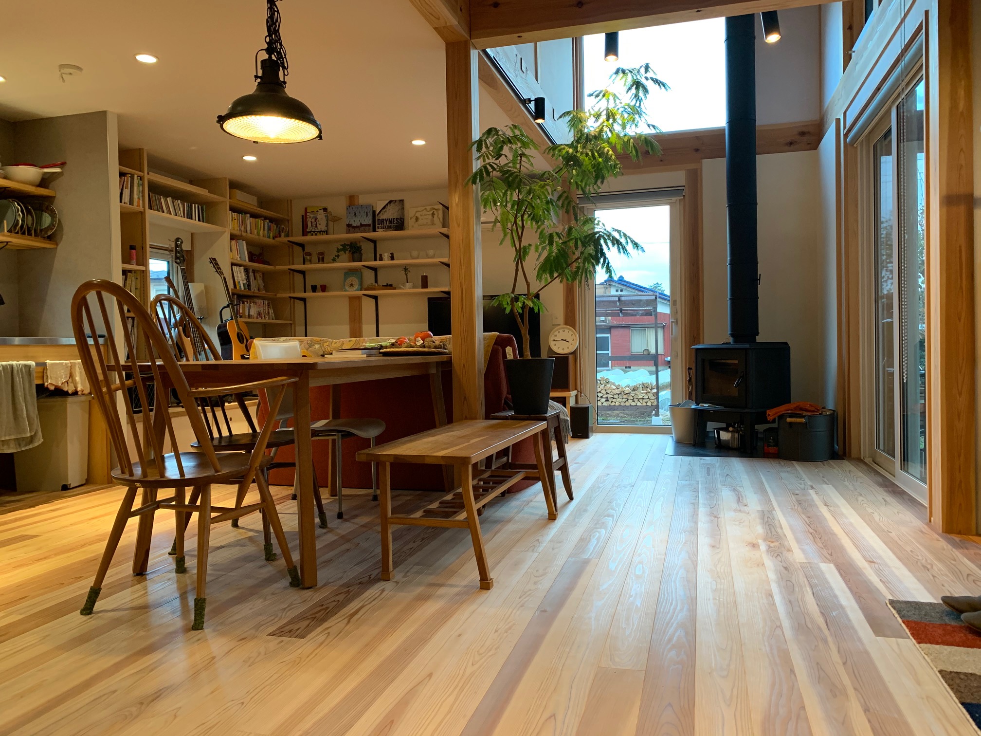 西川材 ドーマーのある片流れ屋根の家 片流れの大屋根と煙突のある外観は、どんな人がくらしているのかと 想像してみたくなるほどいい感じ。 西川材を使った Yutaka の個性と施主のセンスがぴったり合って とてもいい家になりました。 インテリアも素敵です! クリックで拡大表示します 前のページ一覧に戻る 次のページ